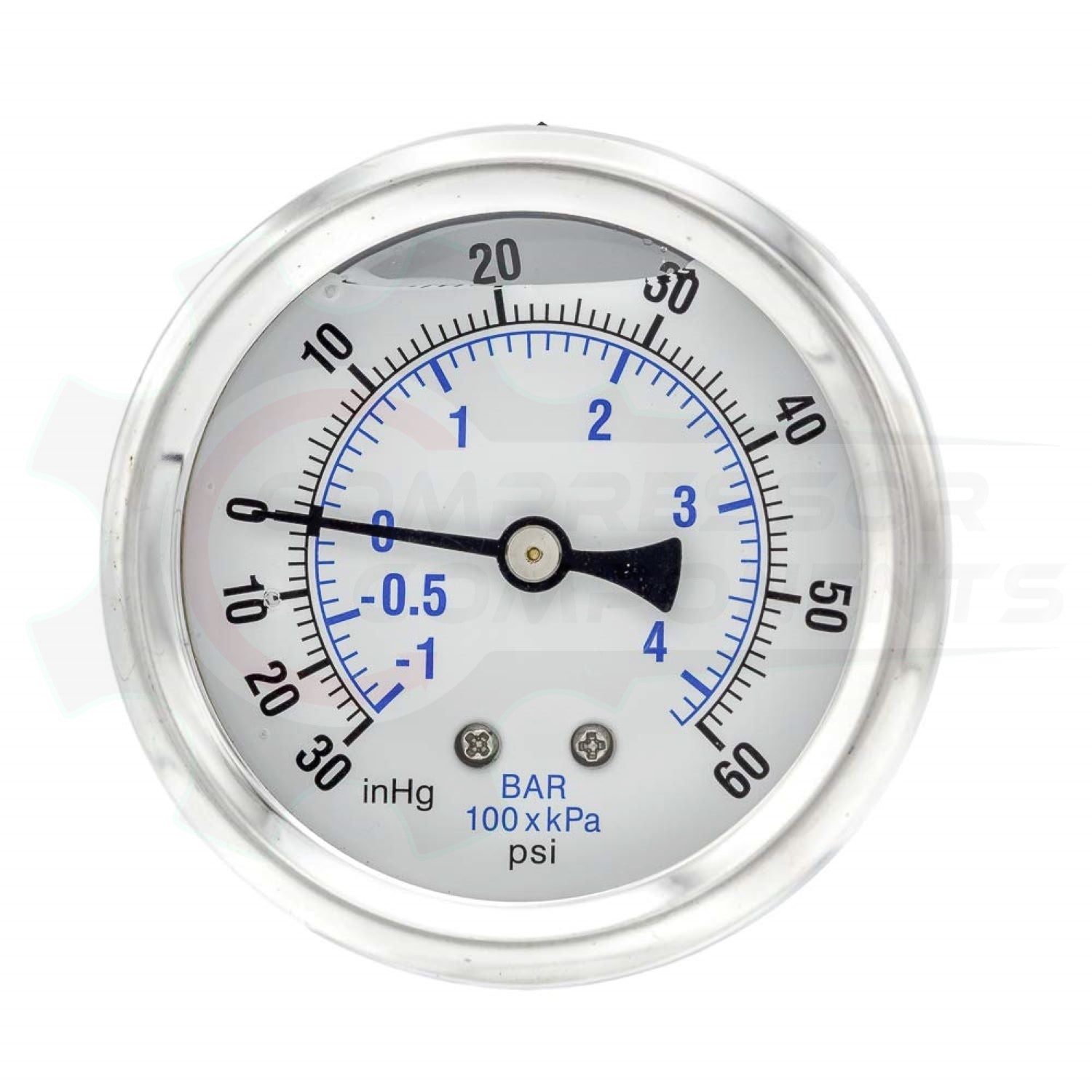 PIC -30/0/+60 BACK MOUNT LIQUID FILLED PRESSURE / VACUUM GAUGE COMBO 2.5" DIAL 1/4" MNPT