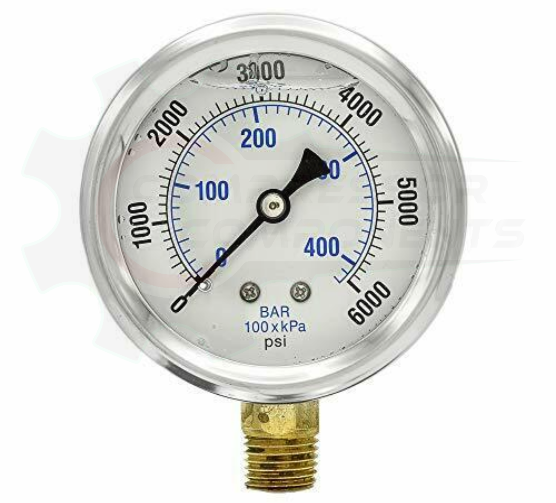 PIC 0-6000 PSI BOTTOM MOUNT LIQUID FILLED PRESSURE 4" DIAL 1/4" MNPT