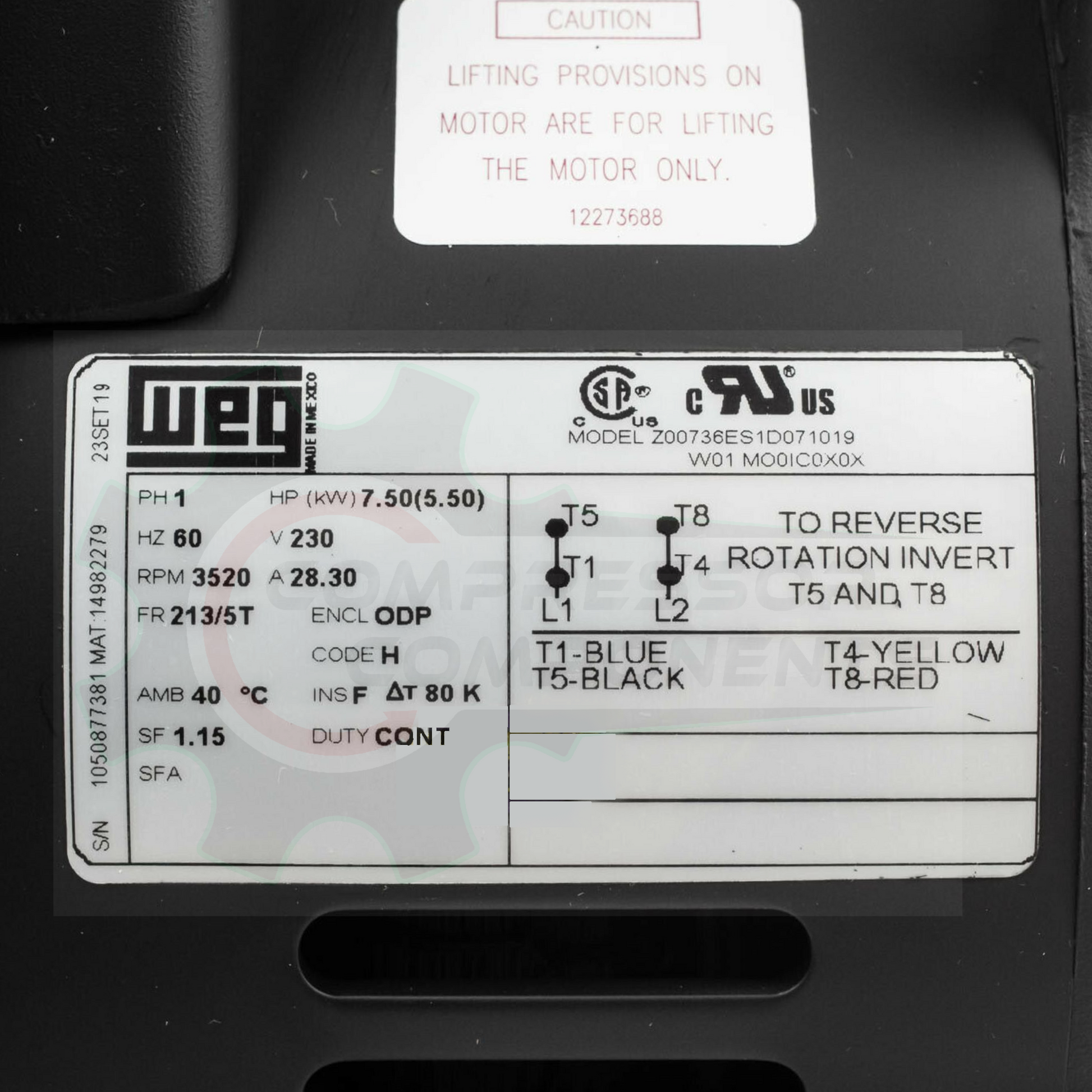 WEG M07536DP213T / 7.5 HP 213/5T FRAME 208-230 VOLT REVERSIBLE